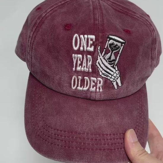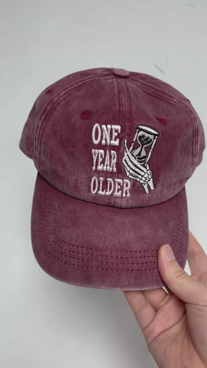 - Timeless Design: Classic dad hat silhouette with a low-profile fit, featuring the signature One Year Older hourglass logo for a touch of meaningful style.